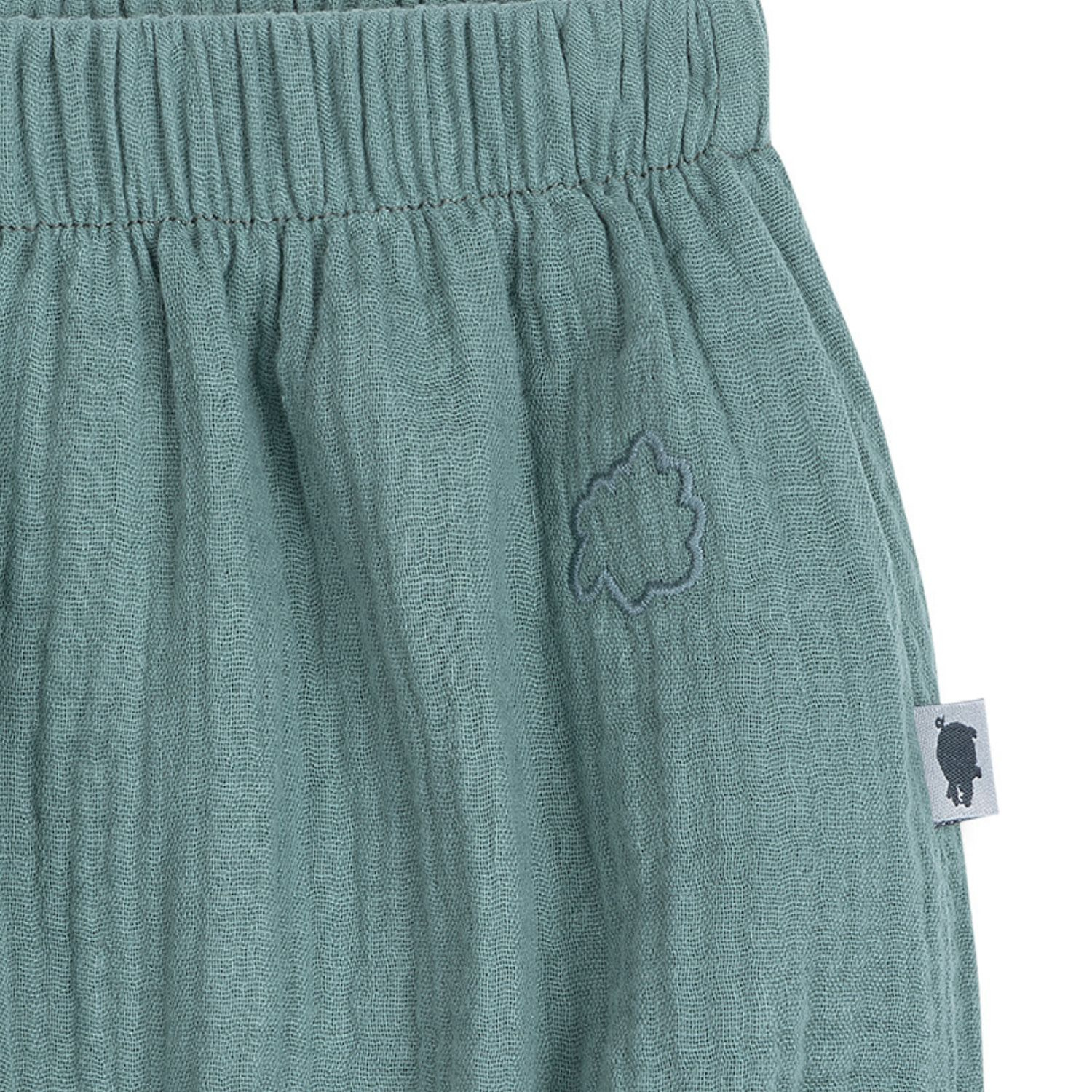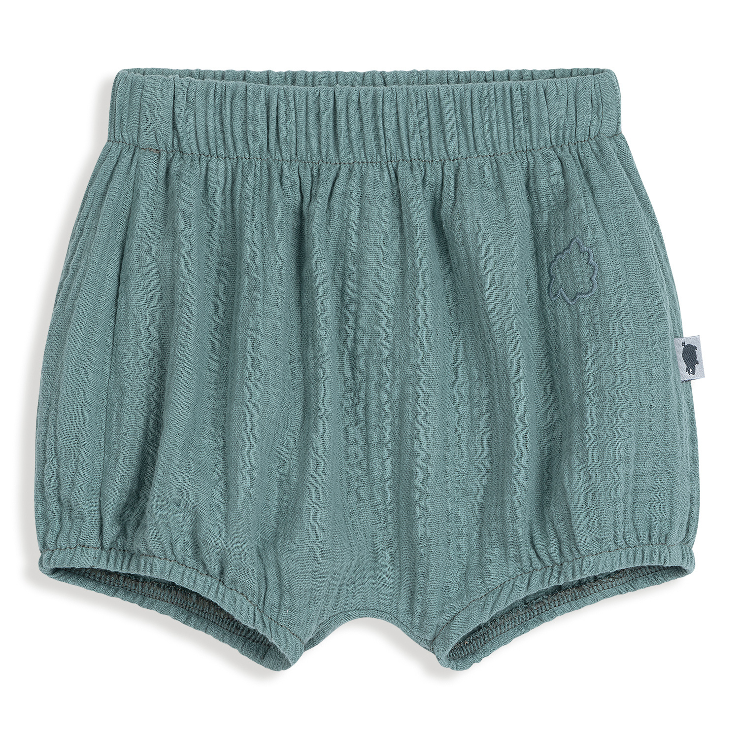 The sweetest summer bloomers for little ones. Made from soft 100% cotton muslin. They have a loose fit to accommodate diapers while still being airy. The wide leg openings ensure that the elastic bands don't dig into your baby's legs, allowing for proper air circulation.