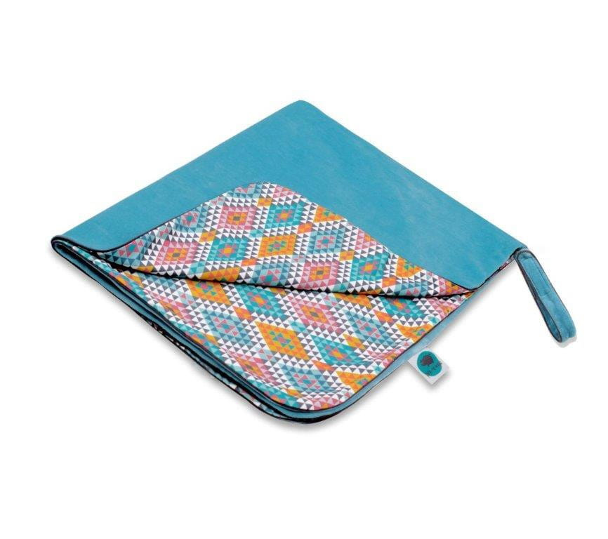 Dwustronny kocyk zaprojektowany z myślą o spacerach w wózku. Wykonany z wysokiej jakości materiałów - z jednej strony milutki welur w kolorze turkusowym, z drugiej strony bawełna w energetyczne etniczne wzory, a całość ładnie wykończona szarą wypustką. Optymalny rozmiar pozwala swobodnie okryć dziecko, a dzięki sprytnemu zapięciu, łatwo przypniesz kocyk do wózeczka i nigdy go nie zgubisz. Życzymy długich, przyjemnych spacerów…